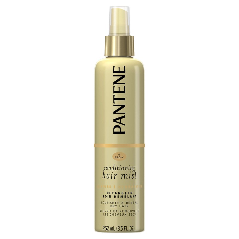 - Spray some nourishment into your hair care. Help nourish and renew dry hair with Pantene Pro-V Nutrient Boost Moisture Conditioning Mist Detangler. This leave-in conditioning mist treatment separates hair strands for easy styling, and it helps deliver moisture and strength when you need it. Enriched with antioxidants to reduce protein loss, Moisture Detangler helps hair stay stronger* against damage. The lightweight formula helps transform hair from dry and brittle to moisturized and soft for a #greathairday. *vs. non-conditioning shampoo