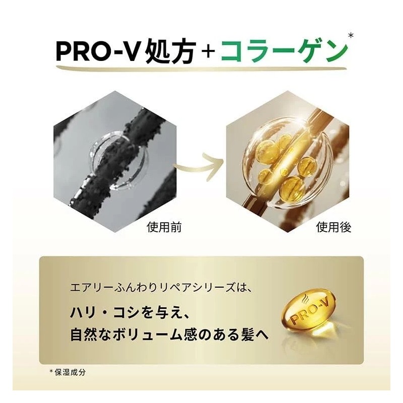 Pantene Airy Soft Repair Collagen * Shampoo: Gives firmness to thin, flat hair ■Fluffy volume from the roots ■As you get older, your hair may become thinner and feel flat. ■Airy Soft Repair Series gives firmness to your hair and leads to natural volume. ■A refreshing scent that combines fruits and elegant flowers■ [How to use] Take 1 to 3 pumps depending on the length of your hair and lather lightly. Gently massage into wet scalp and hair and rinse thoroughly. It is recommended to use the series. If you incorporate Pantene's various treatments, you can expect an even more ideal finish.