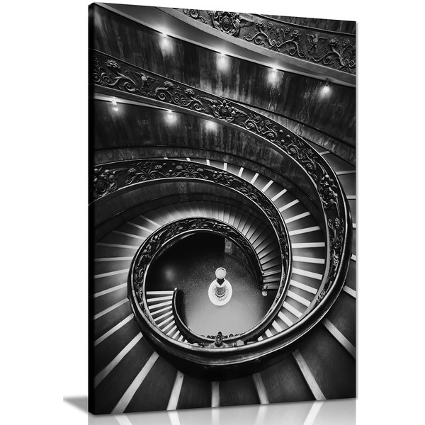 Panther Print Fine Art Prints Architectital Lighted Staircase Artistic Framed Canvas Print, Pictures for Home Walls, Bedroom, Living Room & Bathroom Decor 31x20cm (12x8in)