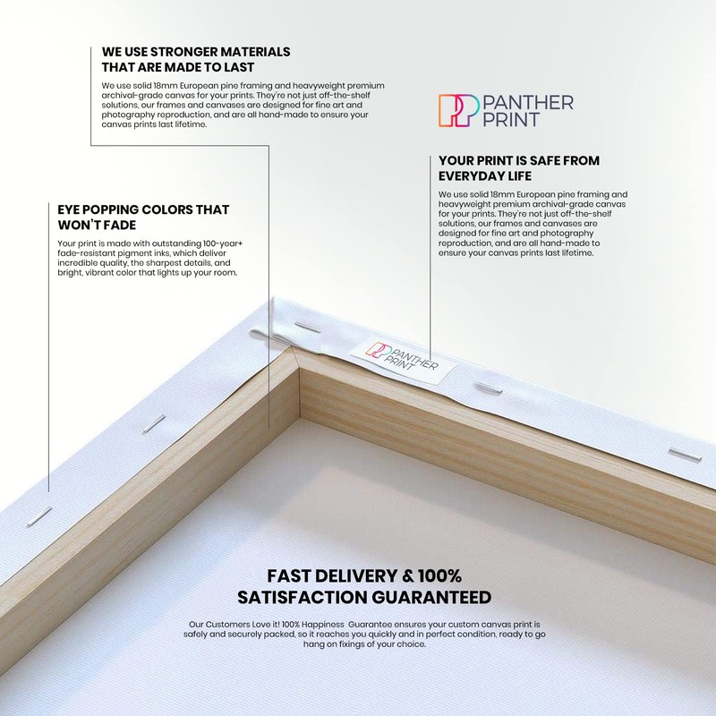 Your canvas art arrives ready to hang, and no additional framing required. Every canvas print is hand-crafted in the UK, made on-demand at Panther Print Fine Art Prints and expertly stretched around 100% European Pine wood stretcher bars. We only use industry leading genuine archival HP VIVERA inks to achieve the most vivid and high-definition canvas prints possible.