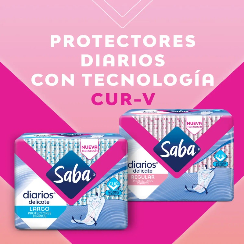 - Los Pantiprotectores Saba Diarios Largos ofrecen una respirabilidad superior para un confort prolongado.