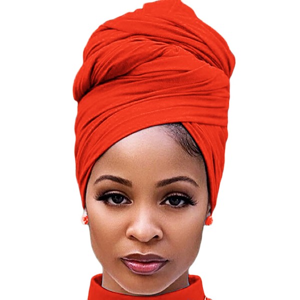 Pañuelo para mujeres negras largo y grande color sólido para el pelo, bufandas ligeras, color naranja