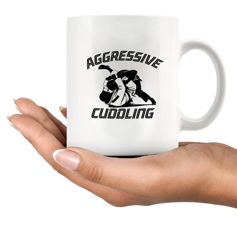 Panvola Jiu Jitsu Aggressive Cuddling Funny Jiu Jitsu Gifts Jiujitsu Coach Player Funny Sarcastic Novelty Drinkware Ceramic Mug 11 oz