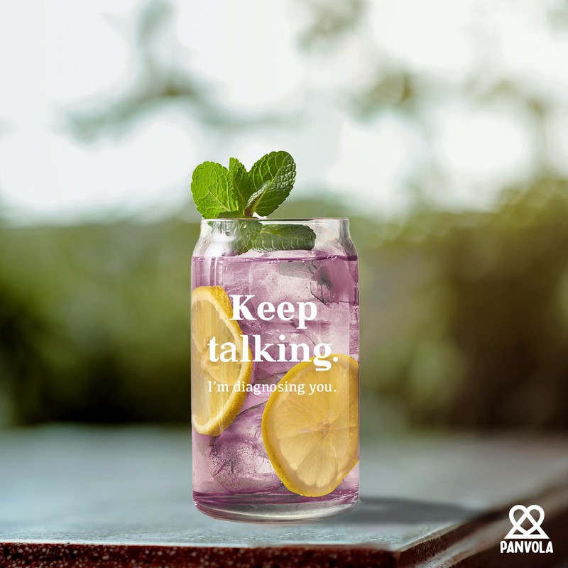 Panvola Keep Talking I’m Diagnosing You Psychologist Counsellor Gifts Glass Cup with Bamboo Lid and Straw Beer Can Shaped Glass Iced Coffee Glasses Drinking Jars Beer Glasses 16oz