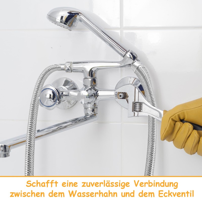 - Vielseitig: Der flexschlauch kann zum Anschluss von Wasserhähnen und Eckventilen verwendet werden und eignet sich daher sehr gut für den Einsatz in Küchen, Badezimmern und anderen Bereichen, in denen ein Schlauch benötigt wird. Es ist eine zuverlässige Wahl zwischen Wasserhähnen und Eckventilen.