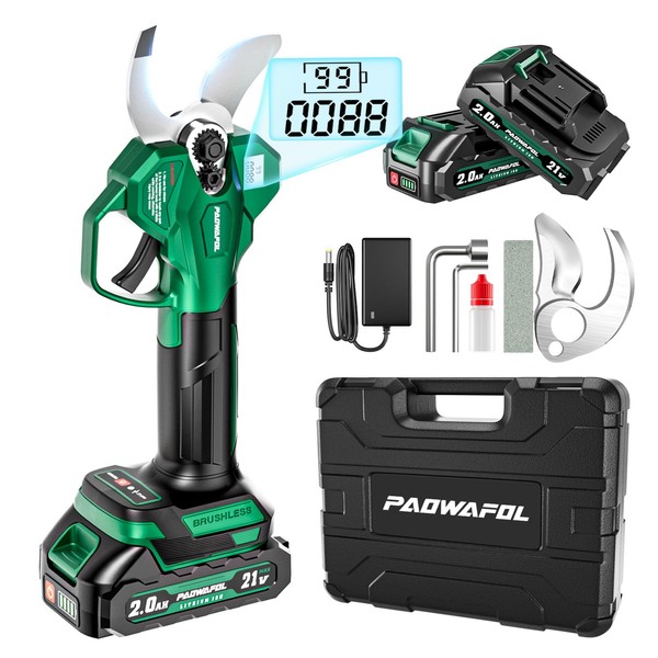 Electric Pruning Shears, 1.6 inch (41mm) Cutting Diameter Cordless Electric Scissors with LCD Display, 21V Brushless Motor Branch Cutter with 2 PCS Rechargeable 2000mAh Batteries & 2 Blades