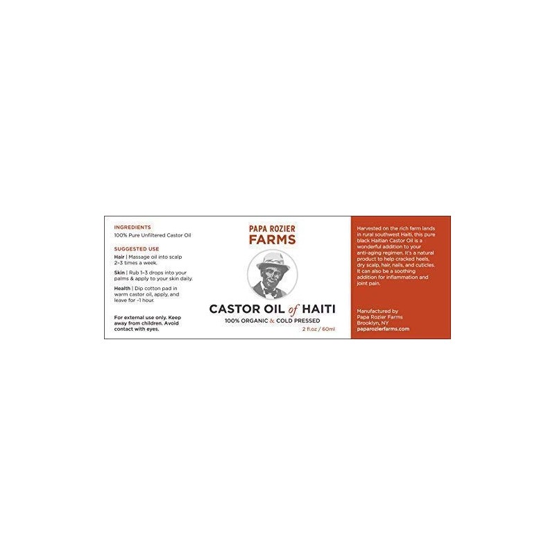 Papa Rozier Farms Papa Rozier Farms Pure Organic Castor Oil for Hair Growth, Skin Moisturizer, Grow Eyelashes, Eyebrows and Nails Treatment, 2 Fluid Ounces, Pack of 1