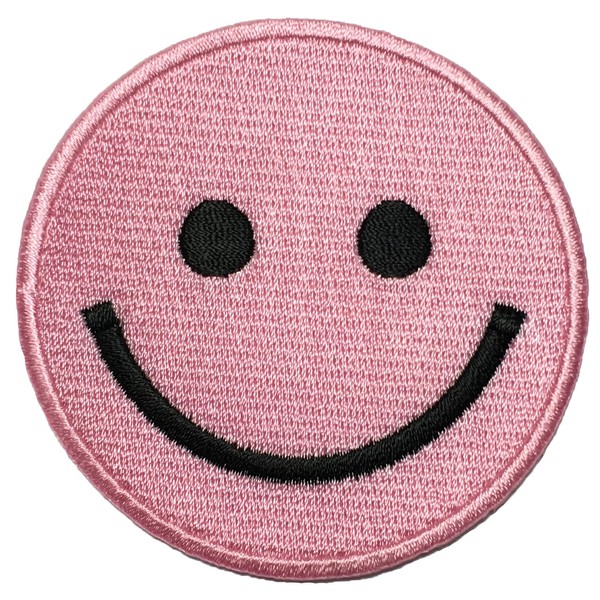 Papapatch Happy Face Smile Fun Hippie Retro Embroidered Sew Iron on Patch - Pink (IRON-SMILE-PK)