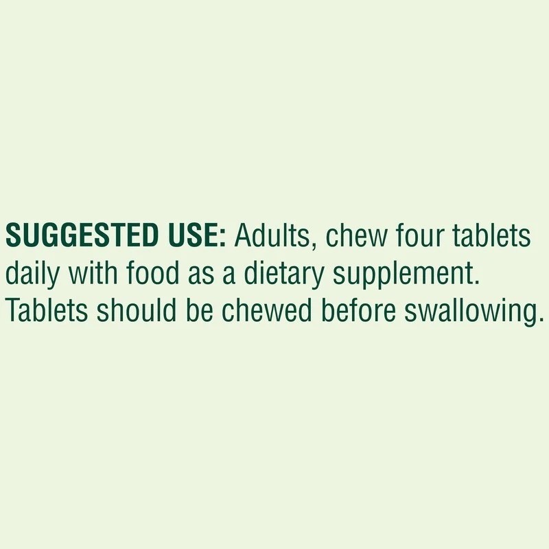 - Features: Chewable, No gluten, No lactose, No salt, Vegetarian