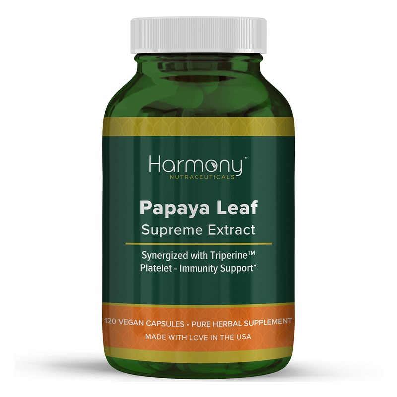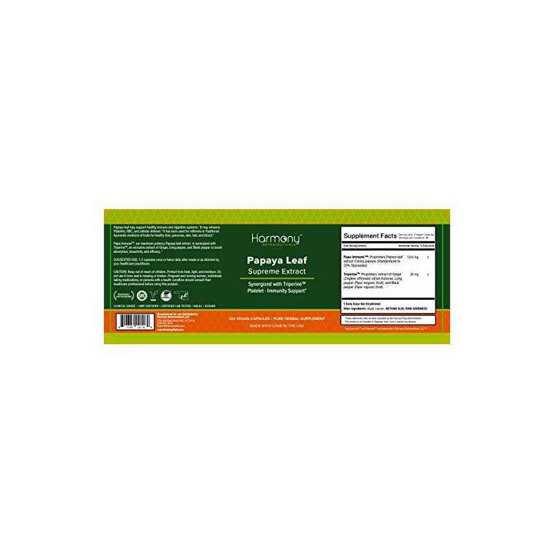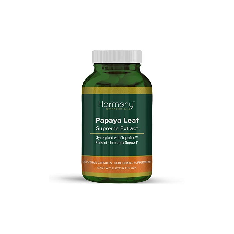 Harmony Nutraceuticals Papaya Leaf Supreme Extract Highest Potency Maximum Bioactivity Organic Dr. Gumman's Clinical Grade 120 Vegan Capsules Synergized with Triperine