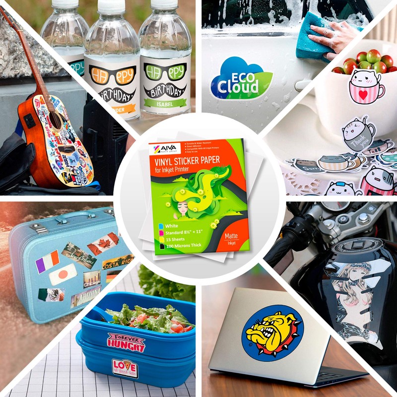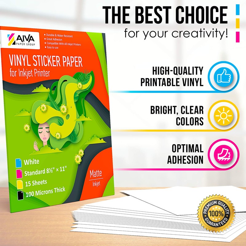 - Papel de vinilo imprimible de alta calidad: el juego incluye 15 hojas de vinilo blancas de papel calcomanía imprimible para impresora, acabado mate. Tamaño de letra estándar de EE. UU.: 8.5 x 11 pulgadas. Adecuado para alta resolución y calidad de imagen clara