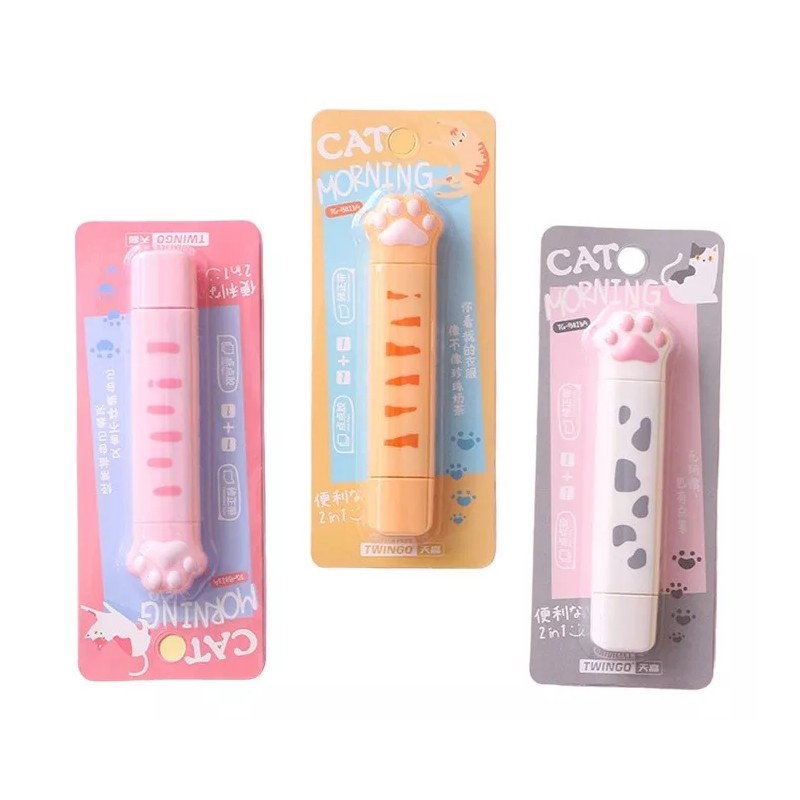 Papelería LAXIA 2pz - 2 En 1 Corrector + Pegamento Cinta Adhesiva Kawaii Cat