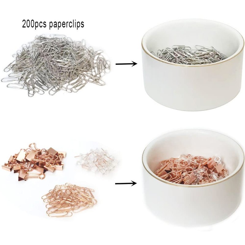 - Heavy and Sturdy Paper Clip Holder for Desk—— Ceramic paper clip dispenser, smooth finished, don't tip over