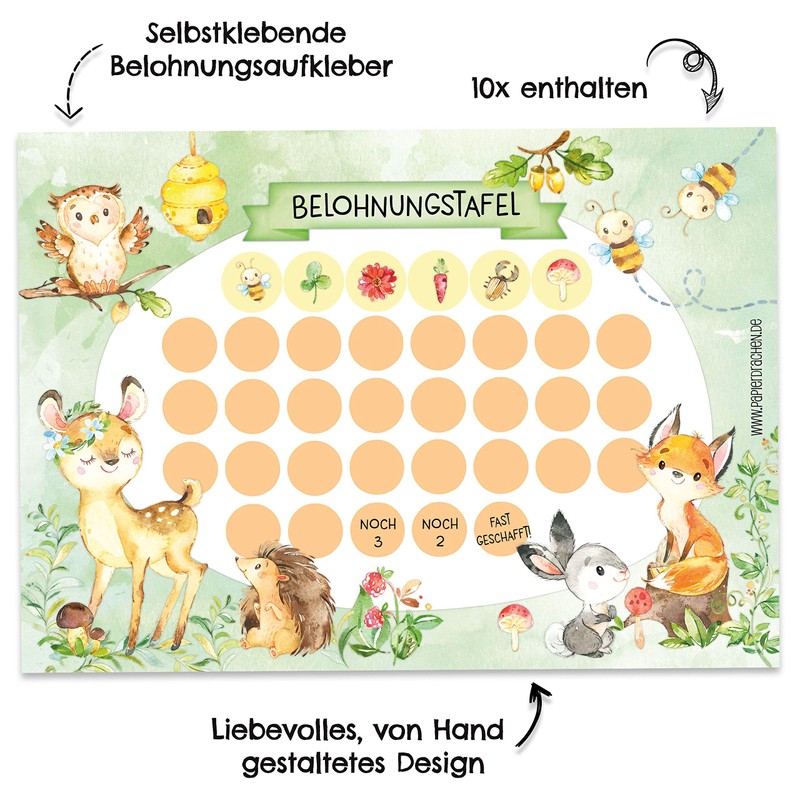 - 1 reward board pad (DIN A4 with 10 pages) - motif forest animals.