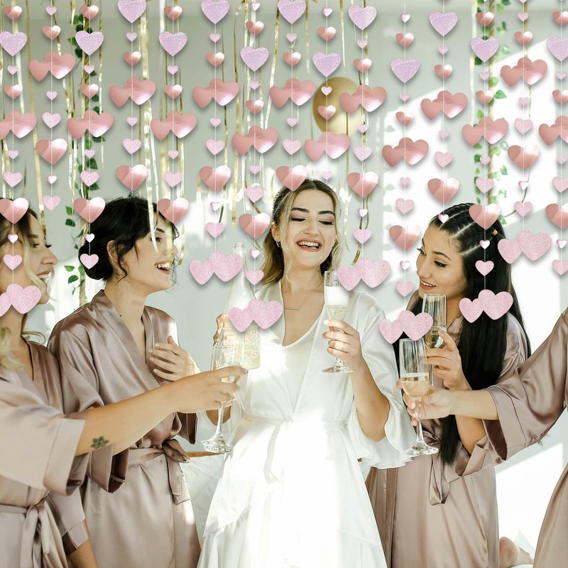 Paper Garland Decoration, QeeFop 52 ft Champgne Pink Heart Garland, Wedding Decoration, Double-Sided Metallic Paper Hanging Garland for Wedding, Birthday, Bridal Shower Decoration (Mushroom & Pink)