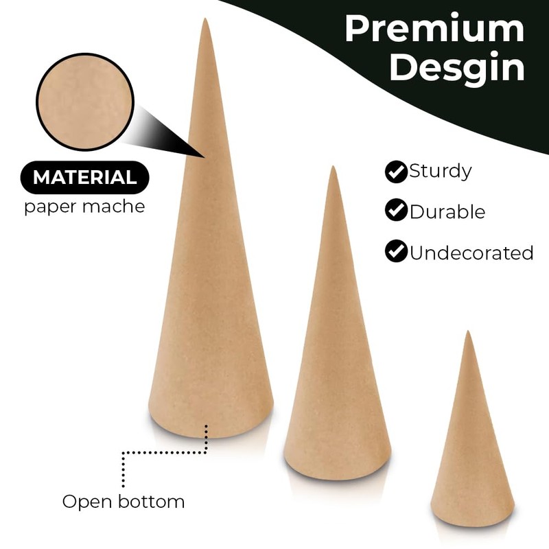 This set of heavy duty paper mache cones is sure to be a great asset to your crafting supplies whether you want to make a giant gnome or get creative in your wedding decor. Ready to use with paint, glitter, seashells, or whatever else you may choose.
