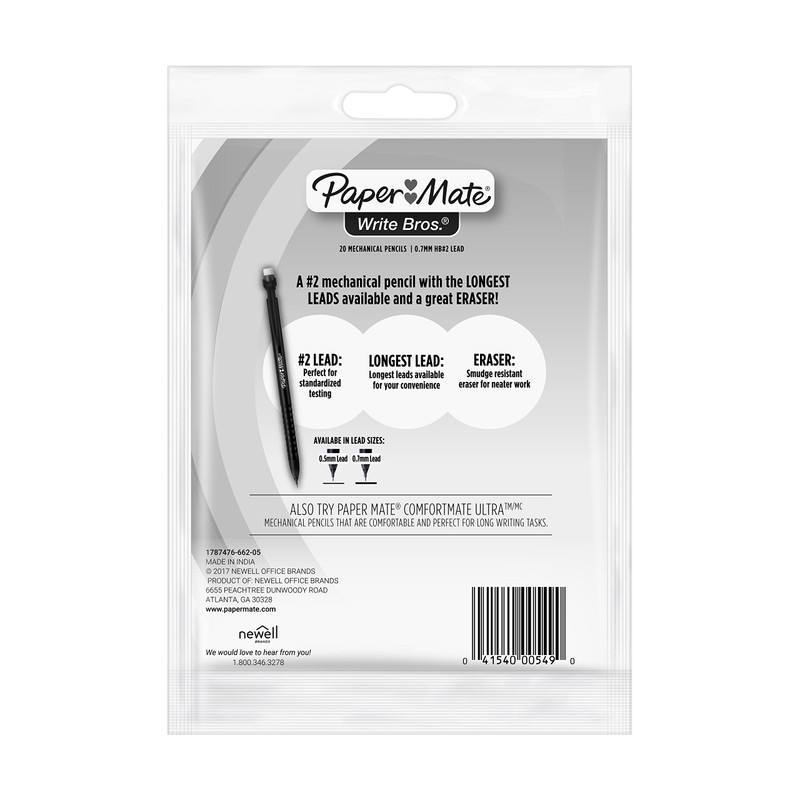 Paper Mate 1787476 Write Bros #2 Mechanical Pencils 0.7mm, 20 Count Pack