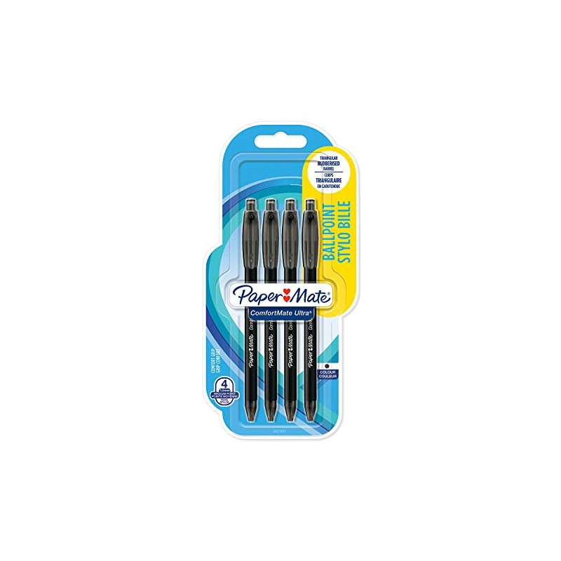 Paper Mate ComfortMate Ultra Retractable Ballpoint Pens | Medium Point (1.0mm) | Black | Pack of 4