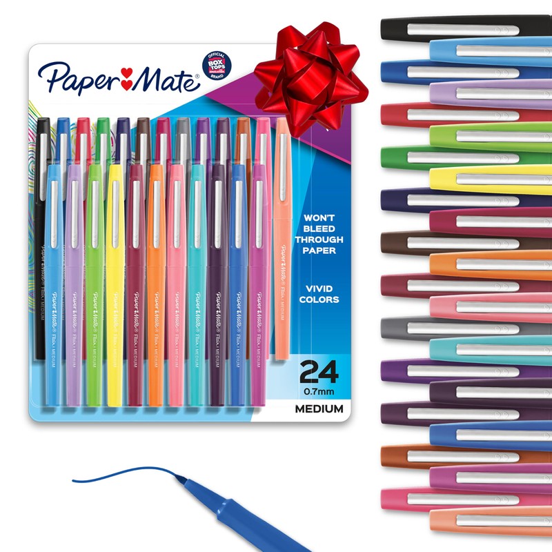 Paper Mate Felt Tip Pens, Flair Marker Pens, Medium Point, Assorted, 24 Count - Home, Office, Back to School, Teacher Supplies