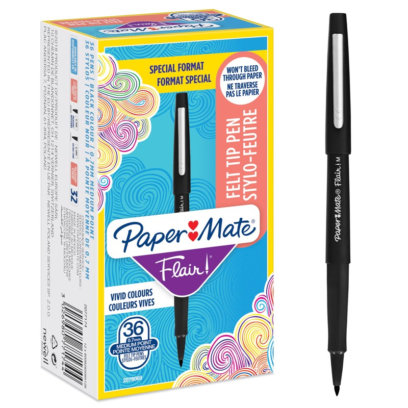 Paper Mate Flair Felt Tip Pens | Medium Point (0.7 mm) Writing Pens | Black Pens | For Writing, Drawing & Sketching | 36 Count