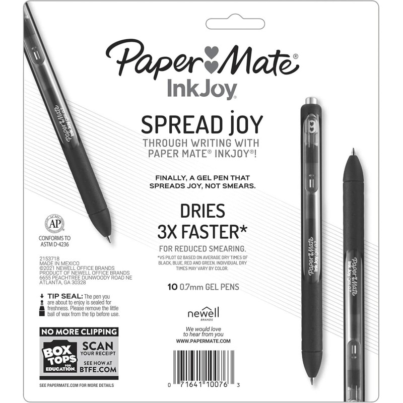 Paper Mate InkJoy Pens Dry Faster, Gel Pens, Medium Point (0.7 mm), Black, 10 ct