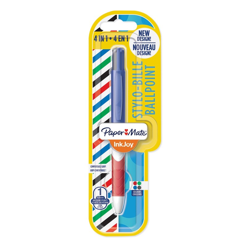 - Includes: one white Paper Mate InkJoy Quatro Ballpoint pen featuring black, blue, red and green inks