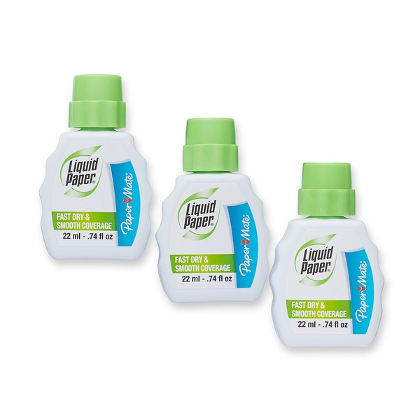 Paper Mate Liquid Paper Fast Dry Correction Fluid, 22 ml, 3 Count | Paper Mate