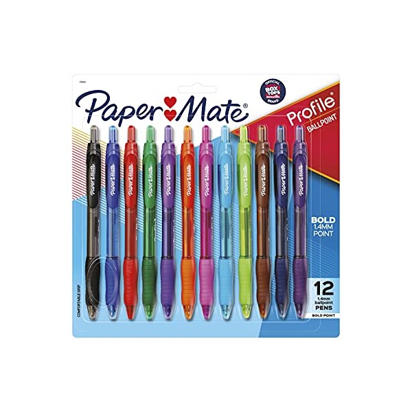 Paper Mate Profile Retractable Ballpoint Pens, Bold Point (1.4mm), Assorted, 12 Count
