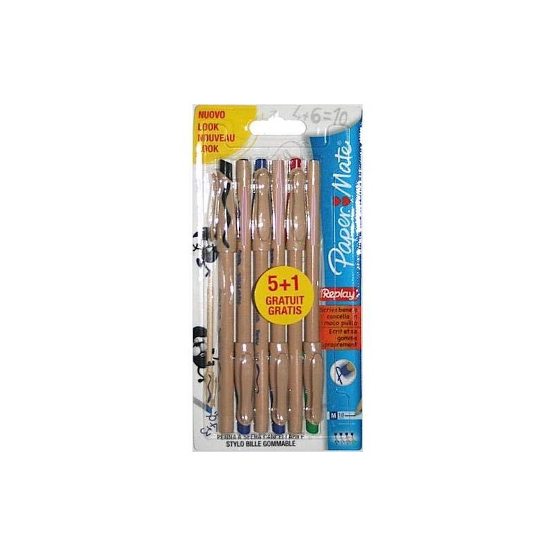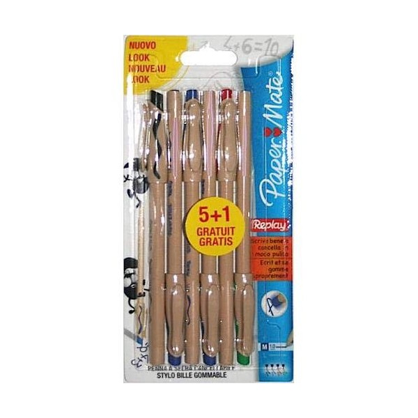 Paper Mate Replay Erasable Medium Tip Ball Pen - Assorted Colour (Pack of 6)