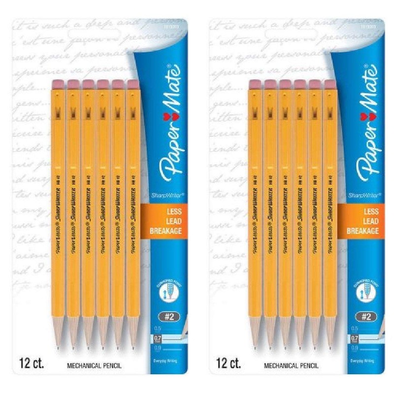 Paper Mate SharpWriter Mechanical Pencils, 0.7mm, HB #2, Yellow, 24 Count