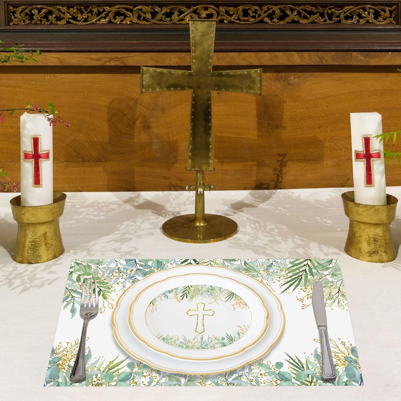 - BEAUTIFUL BLESSED CROSS TABLE DECORATION:These blessed cross paper placemats with vibrant color and beautiful print pattern design,it can provide nice decorations effects for your dinner party and add a warm and festive atmosphere to your dinner.in addition, these disposable place mats will make it easy to clean up after the party