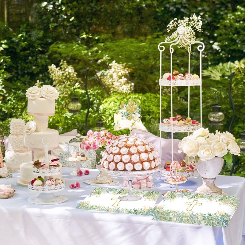 These baptism paper placemats are made of high quality paper to protect your table from stains and food residue. Can be used for first communion, wedding, confirmation, Easter, Christmas, church gathering and religious parties, their bright colors will make your table setting more attractive.