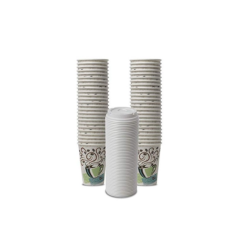 Paper Plates/Bowls 2 set Dixie PerfecTouch WiseSize Coffee Design Insulated Paper Cup, 12oz Cups and Lids Bundle (12 oz, 50 Cups, 50 Lids)