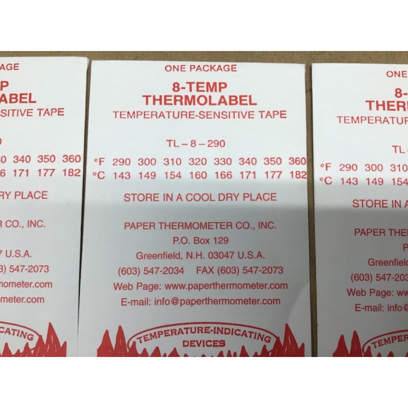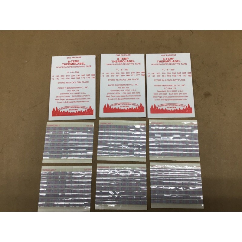 Paper Thermometer 8-Temp THERMOLABEL TL-8-290 (Lot of 3) #4028K38IAC