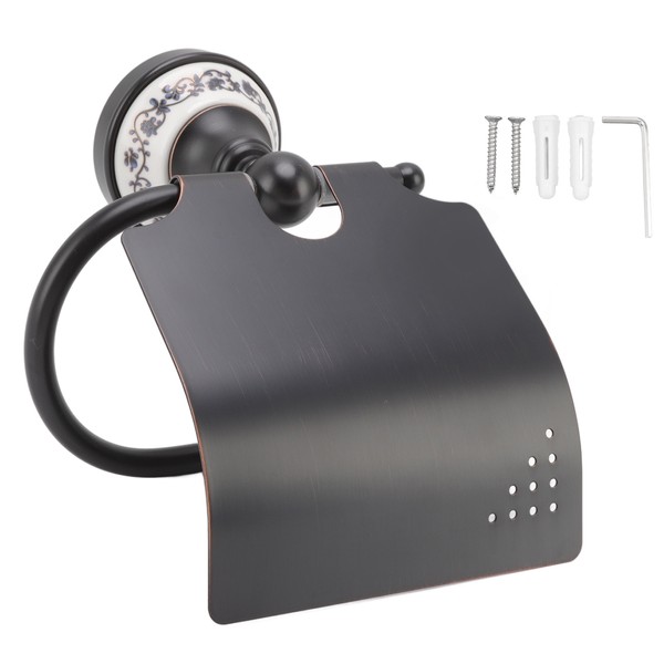 Paper Towel Dispenser Dark Bronze Blue and White Porcelain Wall Mounted Tissue Roll Holder for Bathroom Kitchen