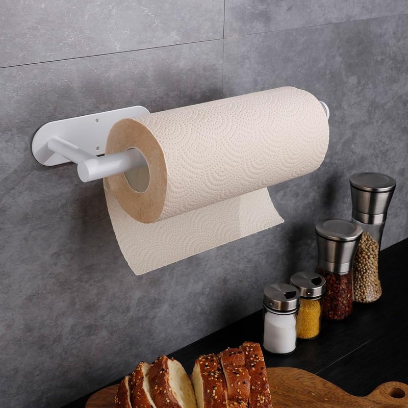 - 【HIGH QUALITY MATERIA】: Paper towel holder under cabinet mount:Paper towel holder constructed of Stainless Steel,Strong and not easily deformed,Waterproof and Rustproof.It has good load-bearing and stickiness, and it is not easy to fall of