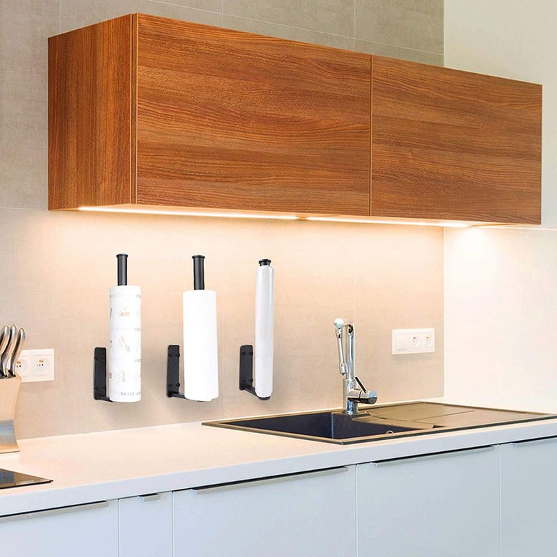 1. Easy assembly: Black paper towel holder with the included assembly parts, this practical kitchen accessory can be quickly mounted on the wall or under kitchen cabinet