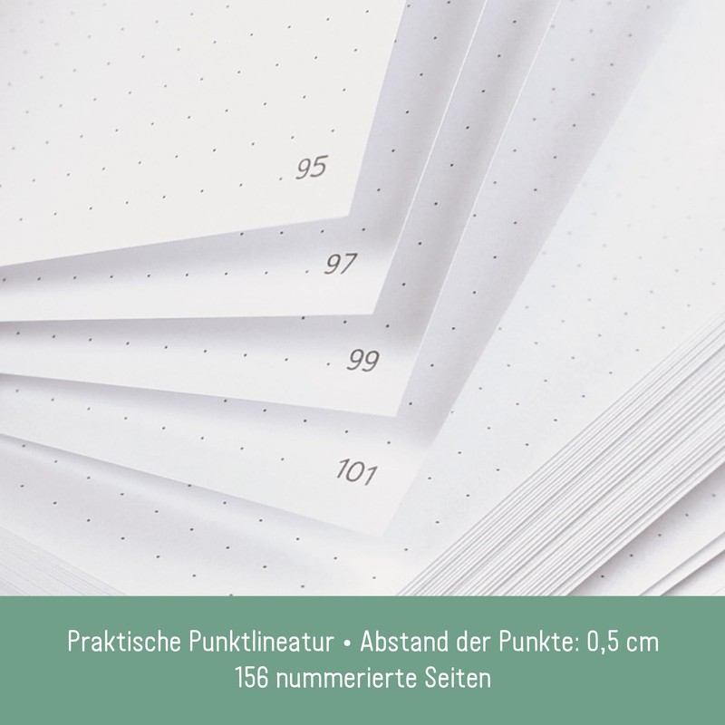 - Large notebook A4+ dotted by Häfft Verlag with ribbon page marker and elastic band for bullet journaling, goals, hand lettering, sketches, plans and thoughts - always with you and on hand when a flash of mind announces!