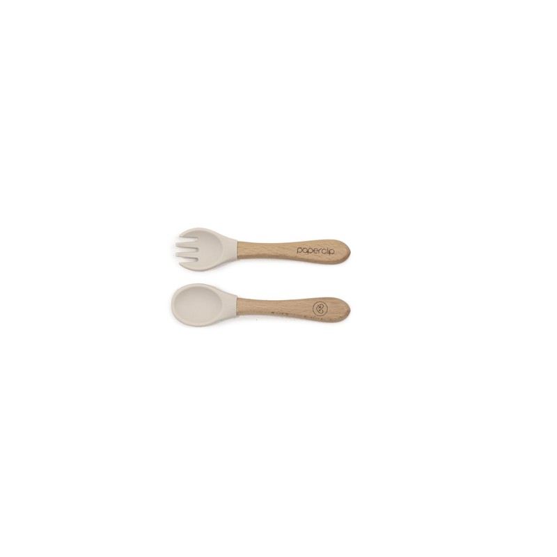 PAPERCLIP Silicone Beech Spoon/Fork Set in Mushroom with Resusable Snack Bag