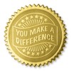 Add the finishing touch to your awards and certificates with these Deluxe Embossed You Make a Difference Gold Foil Certificate Seals. These beautifully- embossed foil certificate seals measure 2 inches round and feature a distinguished stars and banner design with the words You Make a Difference. The self-adhesive, serrated edge embossed foil seals come 102 per pack. Most of our seals come six seals per sheet for a total of 17 sheets.