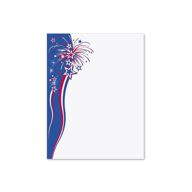 - DETAILED GRAPHICS: Professionally Designed Patriotic Bursting Stars Stationery measures 8.5 x 11 inches and comes 25 sheets per box. Printed on acid-free paper that will not become discolored or brittle over time. Made in U.S.A.