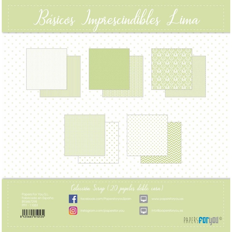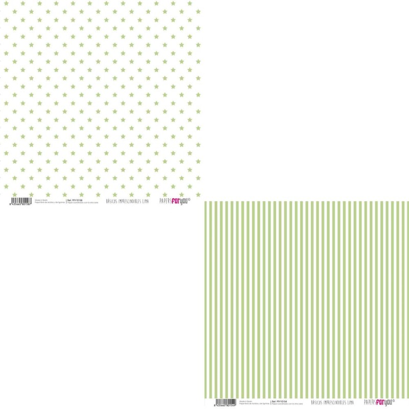Papers For You - Scrapbooking and Craft Paper Kit | "Lime Essentials" Collection | Includes 20 Double Sided Papers with Different Designs | Size 8" x 8" (20.32 x 20.32 cm)