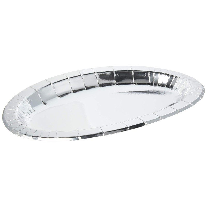 Paperware Party Plates Oval 14.2 inches (36 cm), 20 Pieces, Silver Color PYS-36