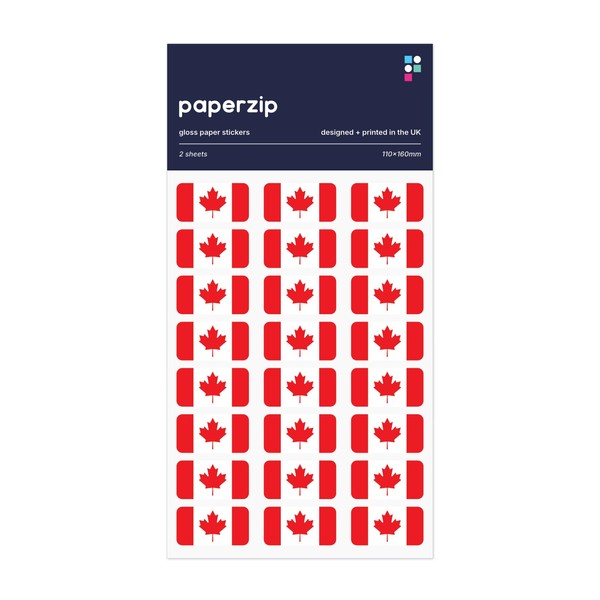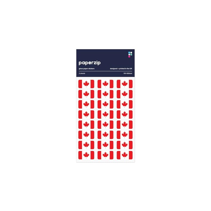 PAPERZIP - Canada Flags (le Drapeau national du Canada, the Maple Leaf) – 48 Stickers for Business, Schools, Celebrations