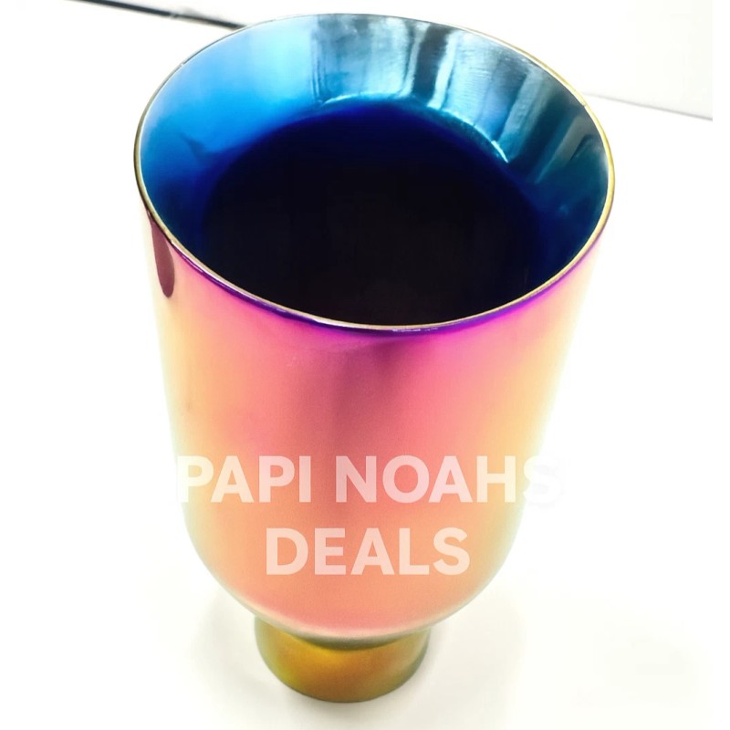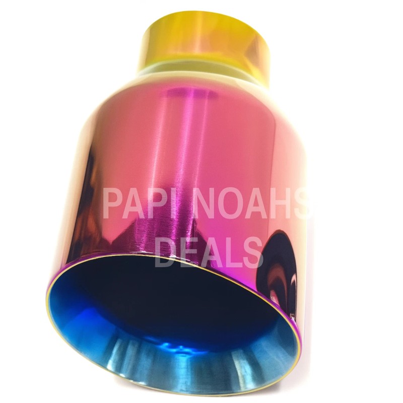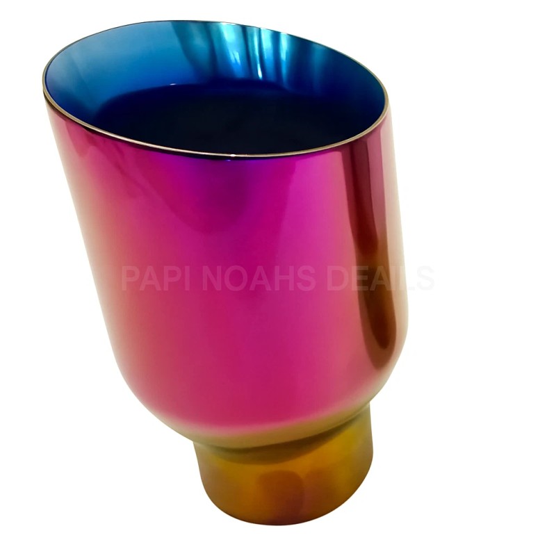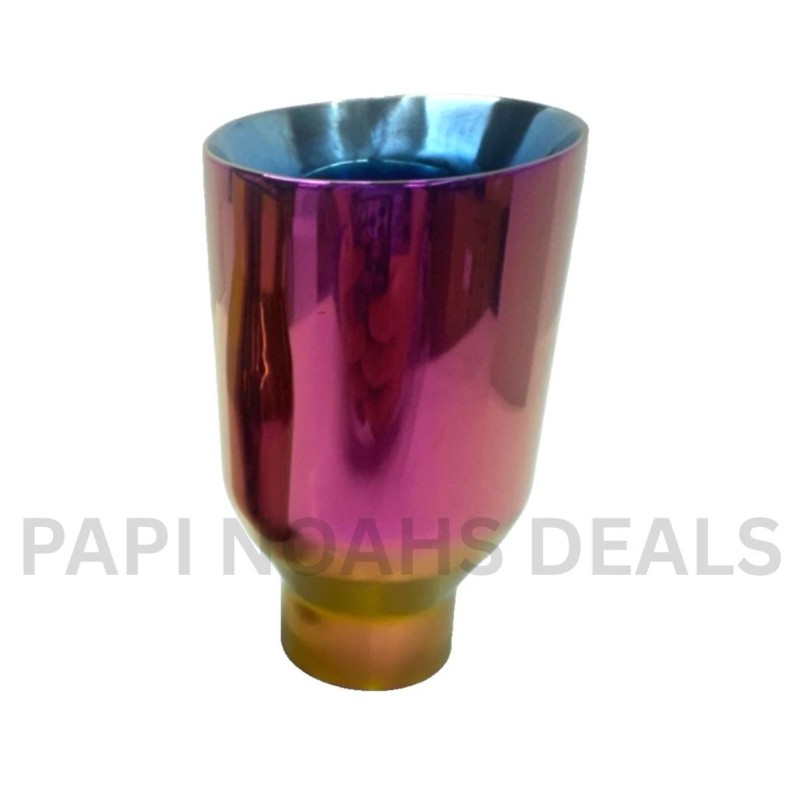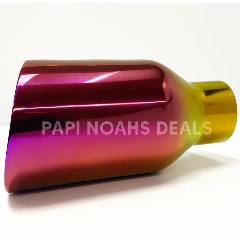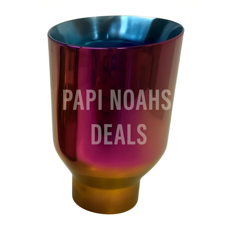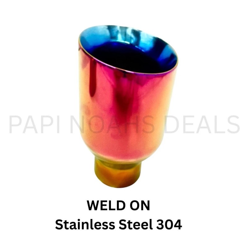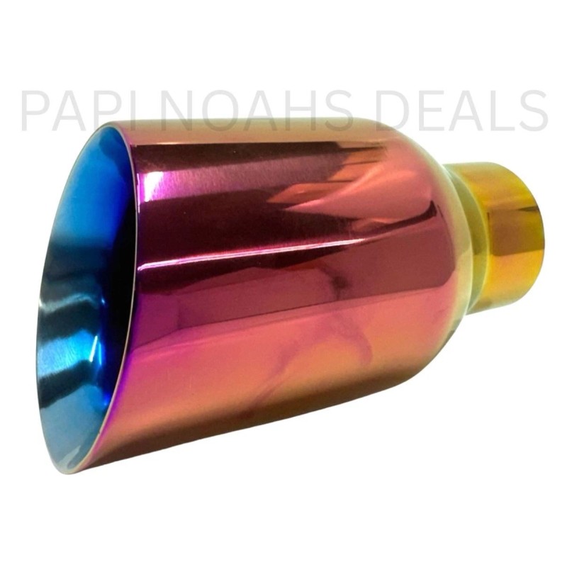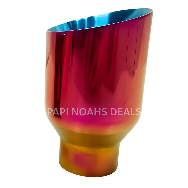 This exhaust tip is perfect for any compatible vehicle looking amazing and sounding even better with its Purple Golden Burned Style stainless steel mirror polished finish and double wall with angle cut 4" Outlet.