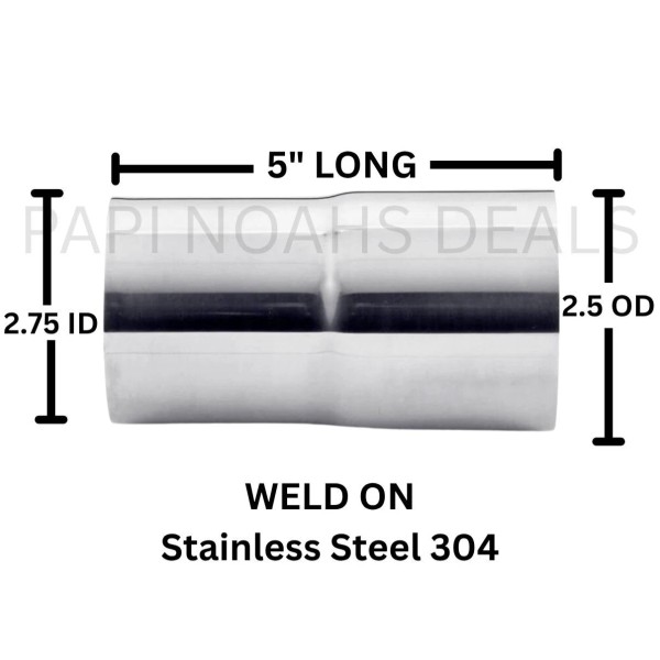 This listing is for 1 BRAND NEW 2.75" ID to 2.5" OD Exhaust Pipe Reducer 5" Long Connector Adapter Made of Stainless Steel 304