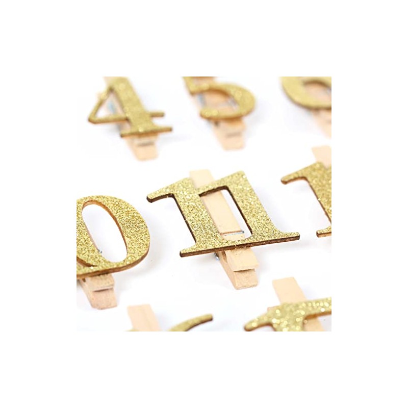 Papierdrachen 24 Wooden Pegs with Glitter Numbers for Advent Calendar – Gold Set 2 – Sparkling Decoration for Your Christmas Calendar – for Children and Adults