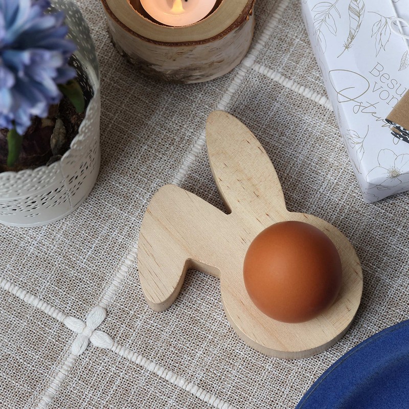 Papierdrachen 4 Wooden Egg Cups – High-Quality Easter Decoration – Perfect for Brunch and Breakfast – Table Decoration for Easter – Rabbit Motif – Set 2