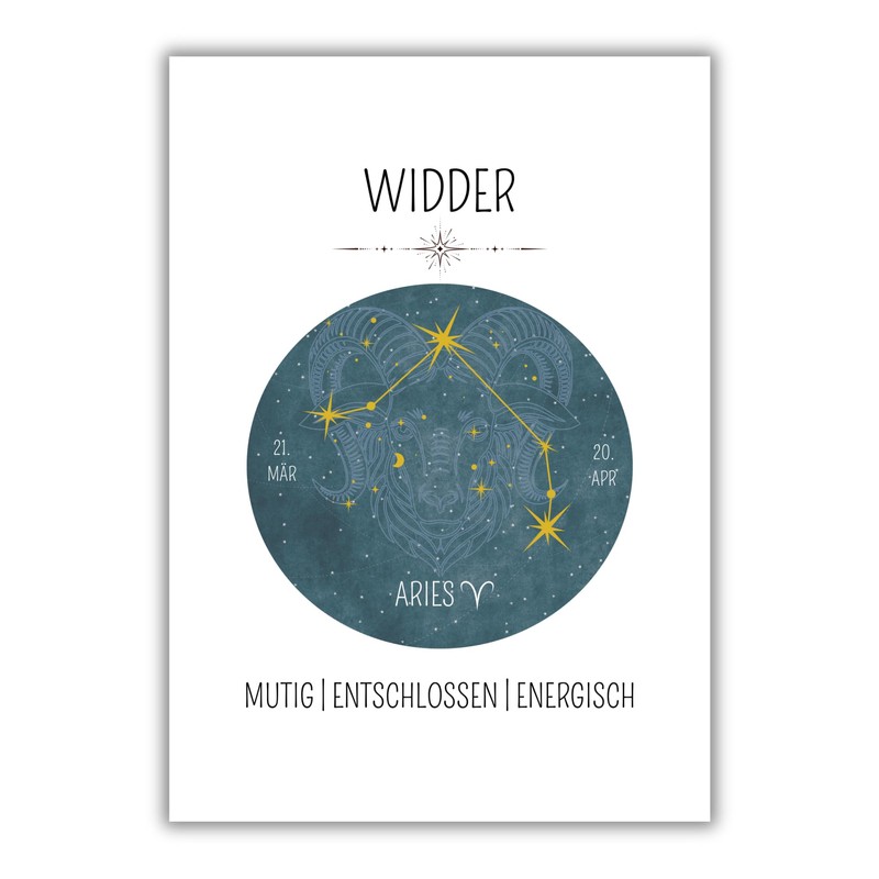 Papierkind™ Poster Zodiac Aries Zodiac Wall Pictures Aries Decoration without Frame Astrology Aries Poster Gift in DIN A4 without Frame (A132-4)