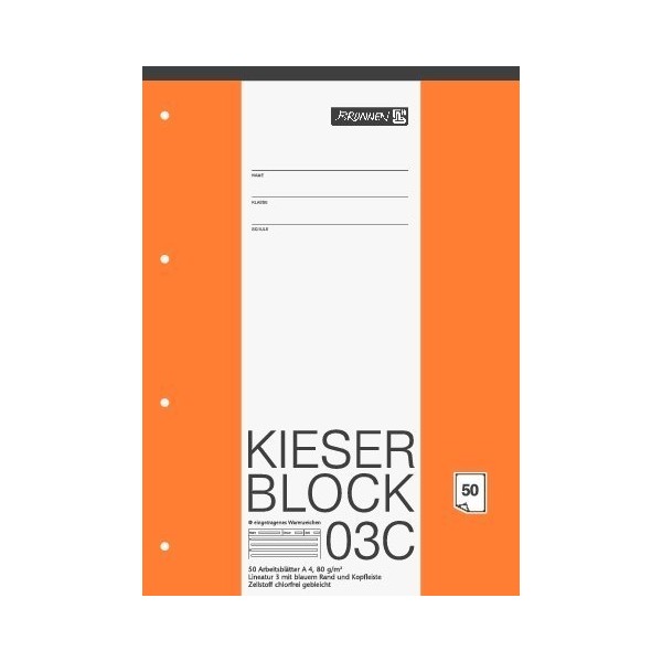 papieto Kieser-Bad/Writing Pad (DIN A4-50 Sheets / 4-Hole Punched) Lineature Freely Selectable (Line Style 03C)